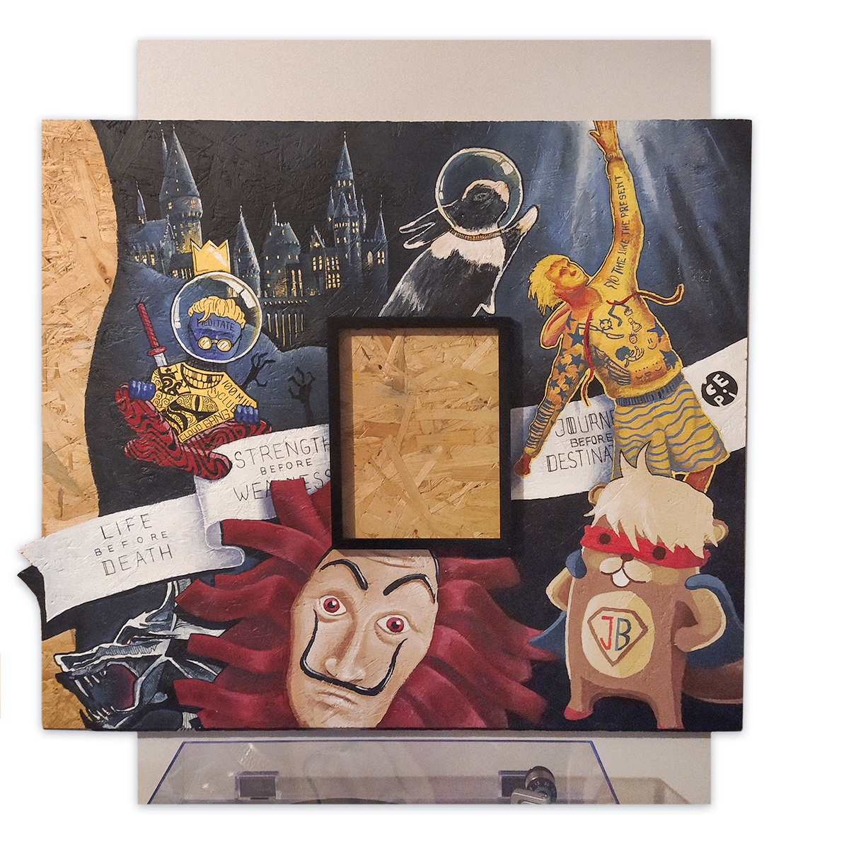 Vlastní nástěnka, akryl na OSB desce.